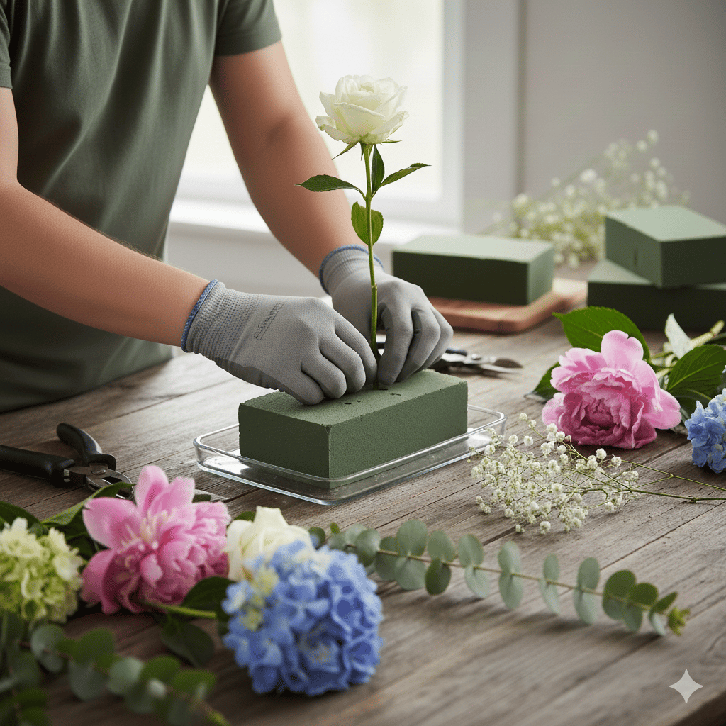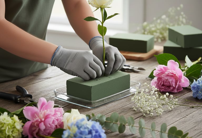 Busa khusus yang digunakan untuk merangkai bunga. Bahan ini dapat menyerap dan menahan air, sehingga menjaga bunga tetap segar lebih lama. Teksturnya lembut sehingga batang bunga mudah ditancapkan dan tetap stabil. Biasanya digunakan untuk rangkaian bunga, bunga papan, dekorasi acara, hingga buket yang membutuhkan struktur yang kokoh.